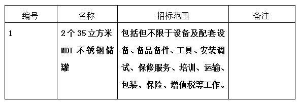 大亞木業(yè)(茂名)有限公司MDI儲(chǔ)罐輸送項(xiàng)目招標(biāo)公告