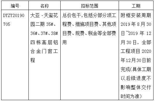 大亞·天璽花園二期四棟高層鋁合金門窗工程項(xiàng)目招標(biāo)公告