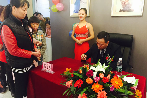 揭幕式之后,宦永良總監(jiān)在體驗館內進行現(xiàn)場簽售活動,活動當天簽售總計85單,預計活動全款將超過110萬元。兩位85后合伙人更為簽單客戶準備了多重豐厚大禮:全年保價、砸金蛋、抽獎等等,現(xiàn)場客戶可謂滿載而歸。