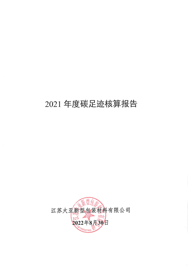 《江蘇大亞新型包裝材料有限公司2021年碳足跡核算報(bào)告》根據(jù)《國(guó)家發(fā)展改革委關(guān)于組織開(kāi)展重點(diǎn)企(事)業(yè)單位溫室氣體排放報(bào)告工作的通知(發(fā)改氣候[2014]63號(hào))》、《碳排放權(quán)交易管理暫行辦法》等文件,遵照《溫室氣體產(chǎn)品碳足跡·量化與通報(bào)要求及指南》(ISO/TS14067:2013)、《工業(yè)其他行業(yè)企業(yè)溫室氣體排放核算方法與報(bào)告指南(試行)》、《商品和服務(wù)的生命周期溫室氣體排放評(píng)價(jià)規(guī)范》(PAS2050:2011)中的相關(guān)指南進(jìn)行編制。